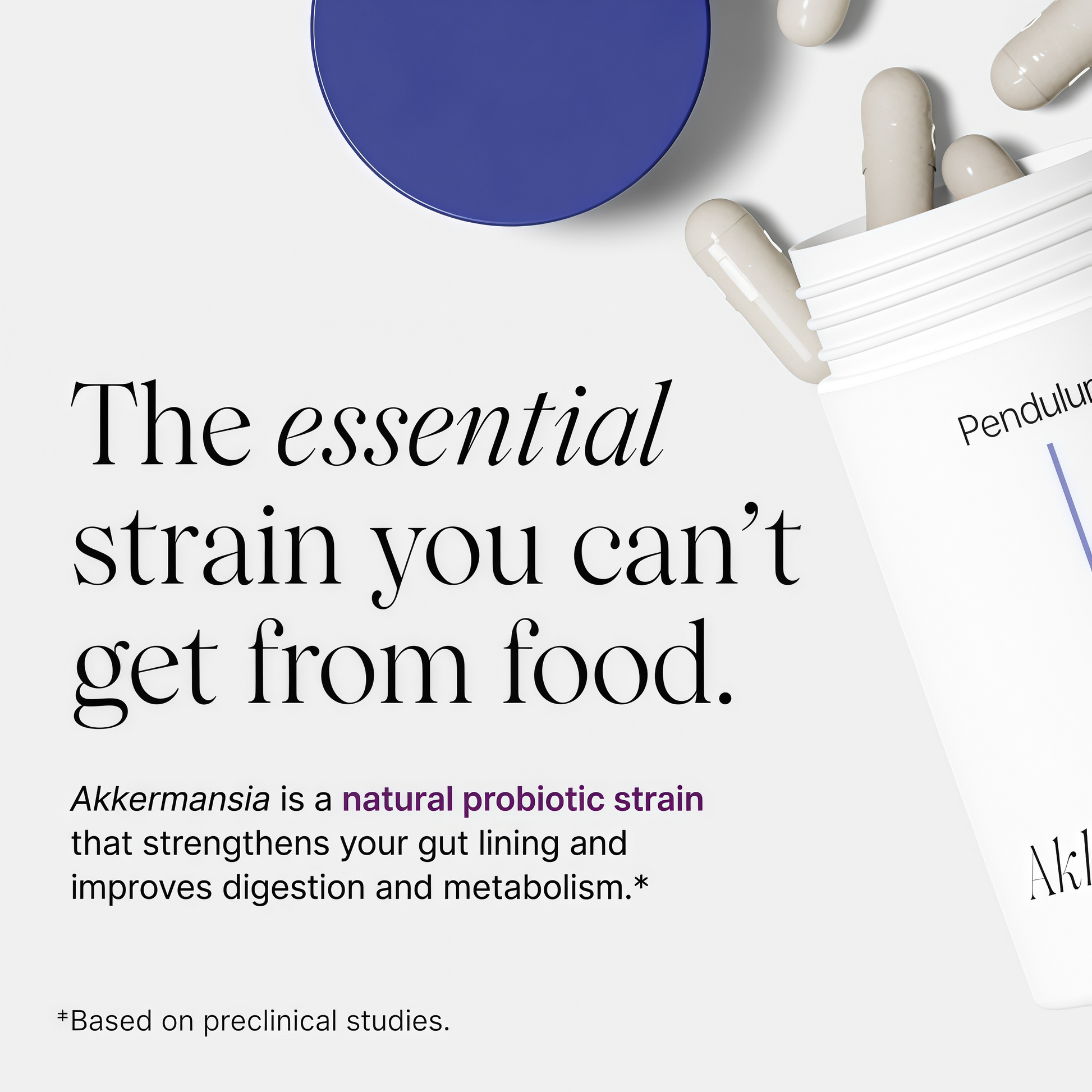 Pendulum Akkermansia targets theroot cause: a weakened gut barrier. With its unique, clinically-studied strain, it helpsseal a leaky gut, calm inflammation, and naturally boost GLP-1for better hunger and sugar balance.